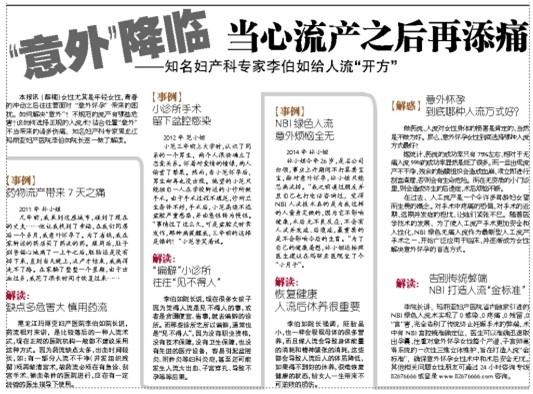 本报讯 (薛楠)女性尤其是年轻女性,青春的冲动之后往往要面对“意外怀孕”带来的困扰。如何解决“意外”?不规范的流产有哪些危害?该如何选择正规的人流术?结合处置“意外”不当带来的诸多伤痛,知名妇产科专家黑龙江玛丽亚妇产医院李伯如院长逐一做了解读。