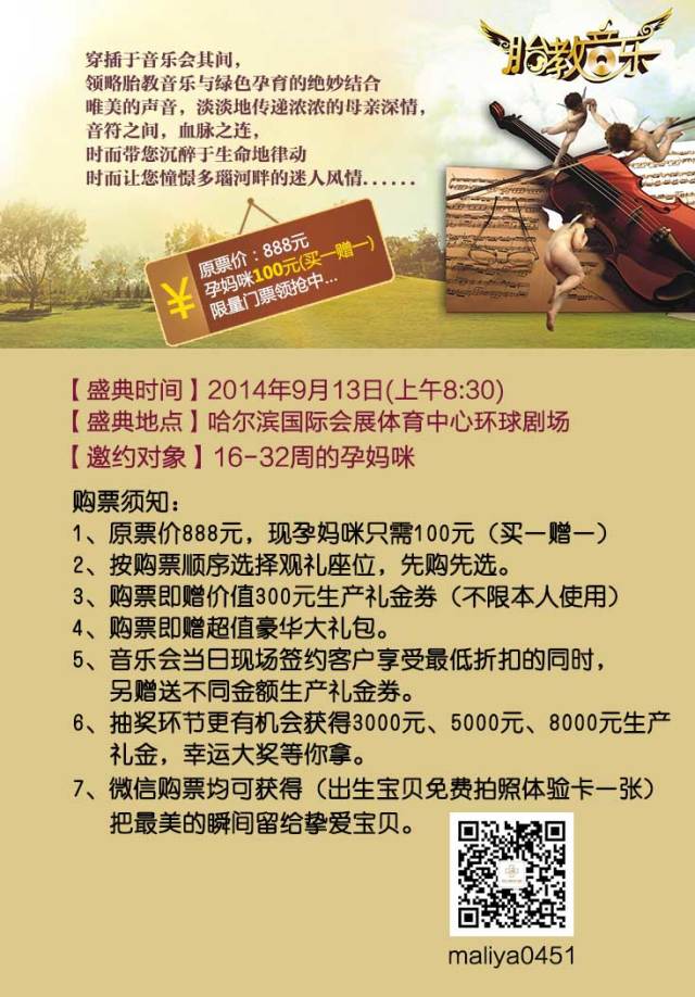 2014年9月13日,黑龙江大型胎教音乐会将于哈尔滨会展中心环球剧场奏响新的篇章,黑龙江2014年夏季胎教音乐节也正式拉开帷幕。届时将由国际一流乐团演绎一场“生命之歌”,翻开龙江宝宝人生的精彩扉页!