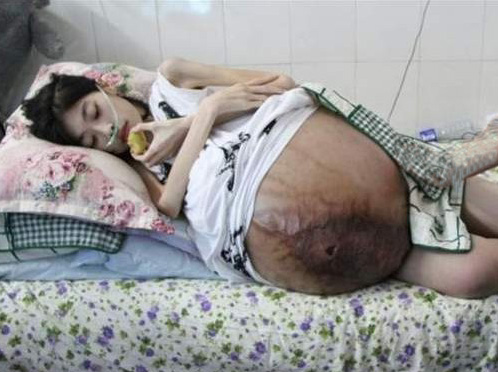 可到了2009年8月,田田的肚子痛得愈发厉害,且拼命地胀。8月7日,郑金凤带着她到医院检查。结果医生当天就通知紧急手术:“田田患的是绒毛膜癌,是一种高度恶性肿瘤,再拖就没命了!” 晚上10点,田田被推进手术室,5个小时后,她体内的子宫旁取出了两大盘的肿瘤。然而术后的田田由于伤口太大,愈合情况不好,伤口处不断流出脓水。在亲友的建议下,郑金凤带着田田和村民捐赠的两万多元去了厦门中山医院。
