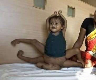 几年前,印度一名女童生来就有4只手和4条腿,盆骨下方连接着没有头、未发育的寄生死胎身体,被印度人称为蜘蛛女孩。