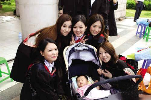 左边是“婚纱版”毕业照,右边是携带婴儿的“母女版”毕业照,大学毕业、结婚生子同时发生!今年广州某高校新闻学院2007级女大学生小妍(化名)还没有毕业就成了“大学生妈妈”,吸引了众多目光——祝福、羡慕,当然也有误解和不屑。
